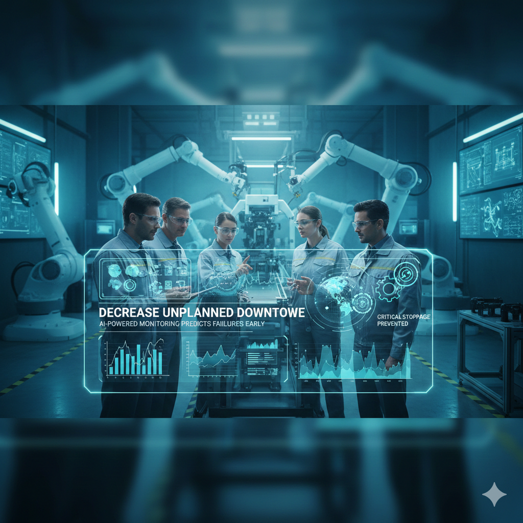 AI-powered monitoring predicts failures early, helping teams intervene before critical stoppages impact production.